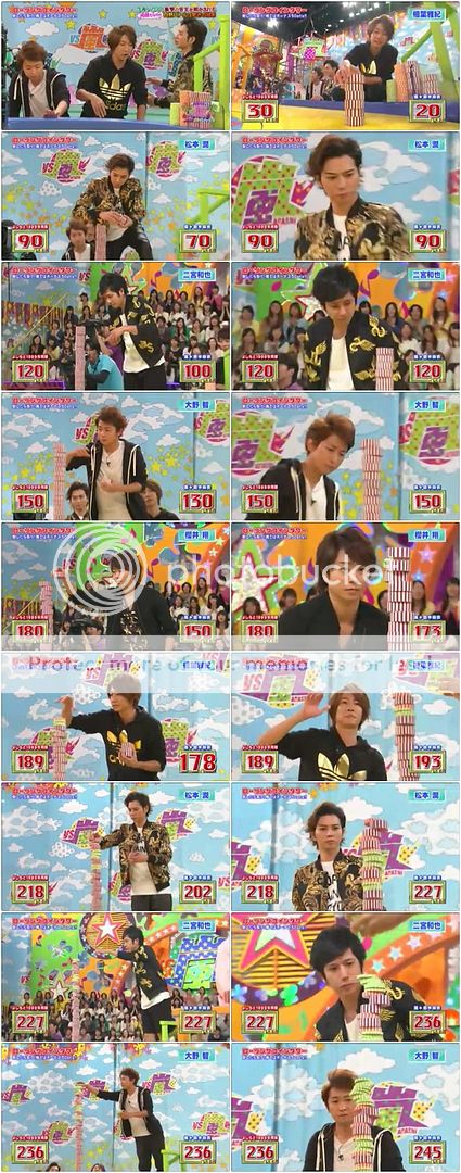 那句GAG出來就害他無法集中了。嘉賓就說『所以你得意的只有GAG嗎?』哈哈哈哈!!翔『那不是GAG!!』但是說不定分數其實嵐隊比較高哦。伊藤桑公佈成績,50分給了嘉賓隊後,嵐隊還是落後了。