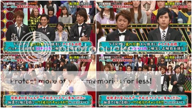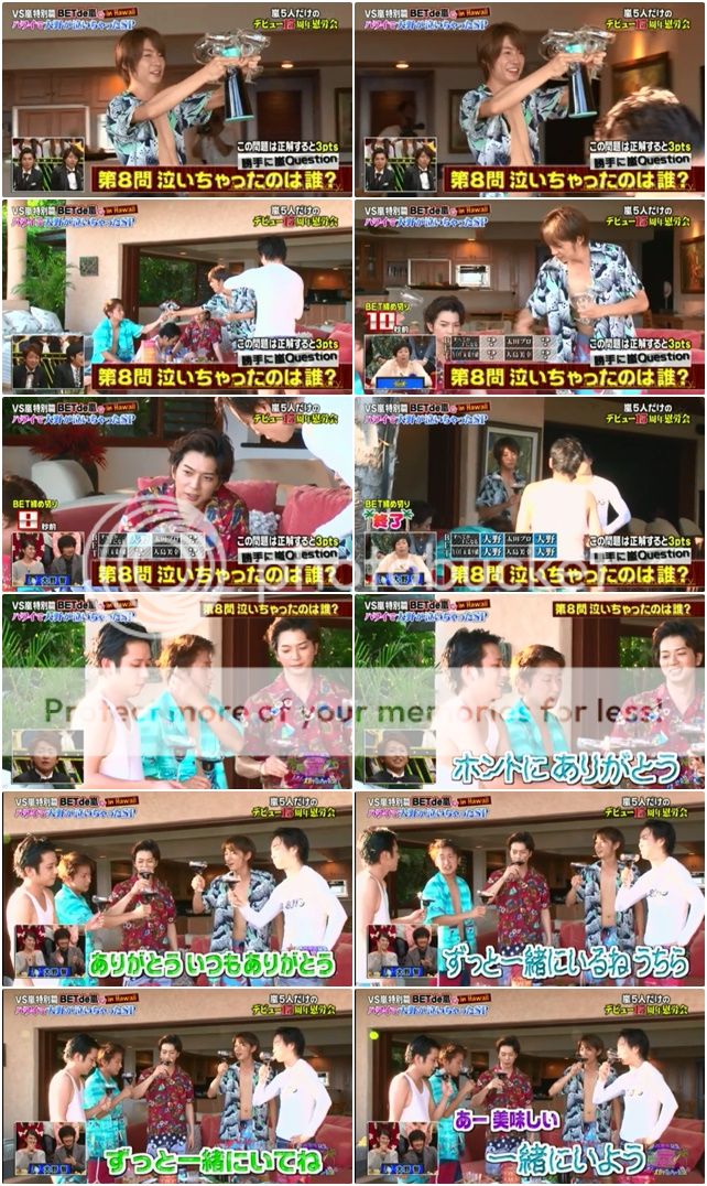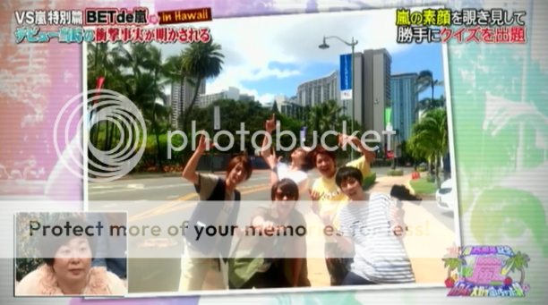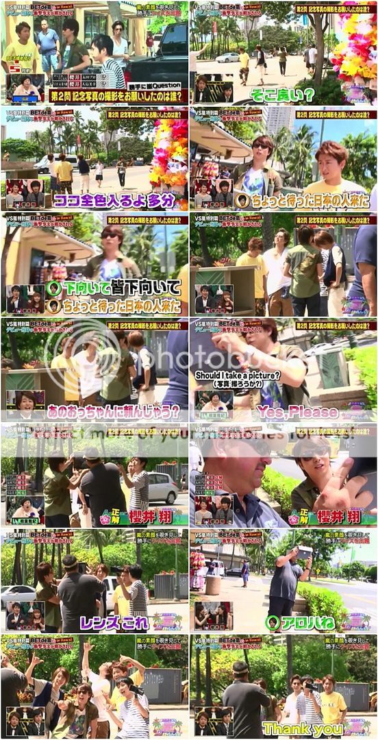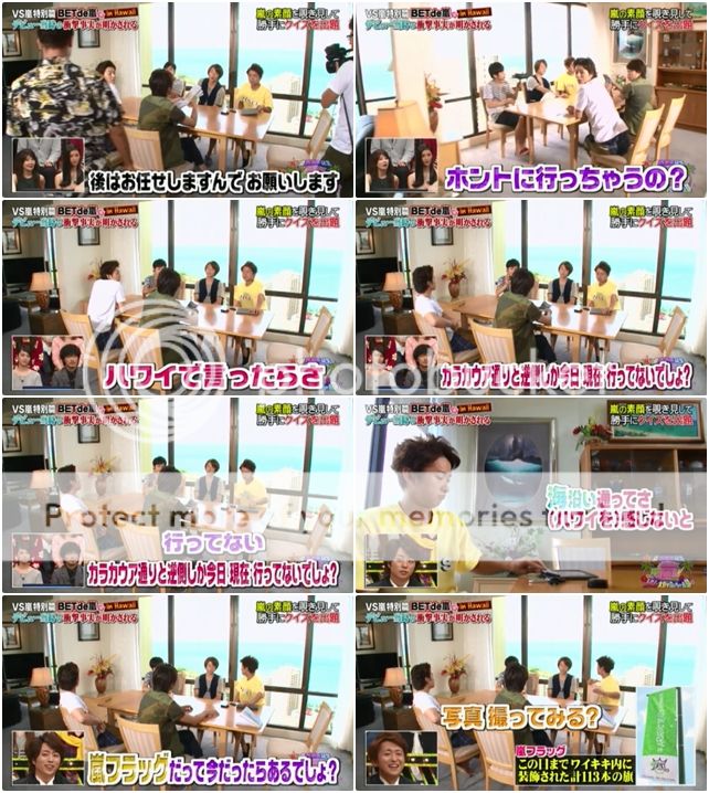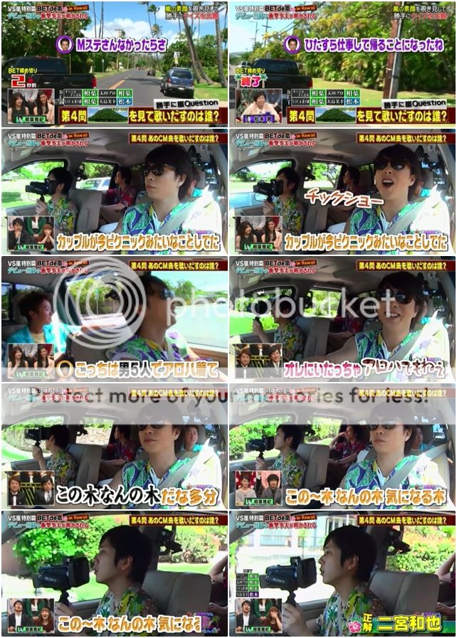這次的Bet de嵐和以往不一樣的是,不會有門把對決嘉賓們來猜測,而是從夏威夷特輯的VTR裡問QUIZ然後嘉賓要在限時10秒內作答。雅紀說如果當時有好好做就好了呢。潤就吐槽雅紀了。笑