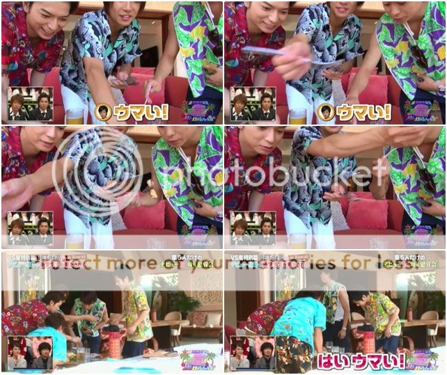 NINO上前說其實衣服需要這樣穿的,於是拉了翔身體兩側的那兩條繩子開始綁起來。哈哈哈哈哈!!!!!需要綁那麼緊嗎?都快勒死我們翔了啦。綁完後很惡魔的大爆笑了NINO。翔『這什麼啦!』哈哈哈哈!!你們怎麼那麼可愛啊~~~~