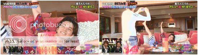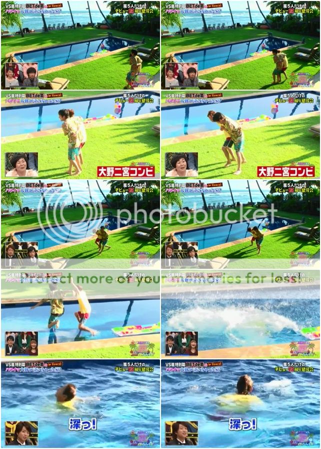 忽然看到NINO抓著利達走到游泳池。哈哈哈哈!!利達一直在抵抗,可是還是避免不了的兩人一起掉進水裡了。NINO其實是想推利達下去的,但是自己也掉下去了。真是可愛的大宮。掉下去,又是一陣『水好深啊!』哈哈哈!