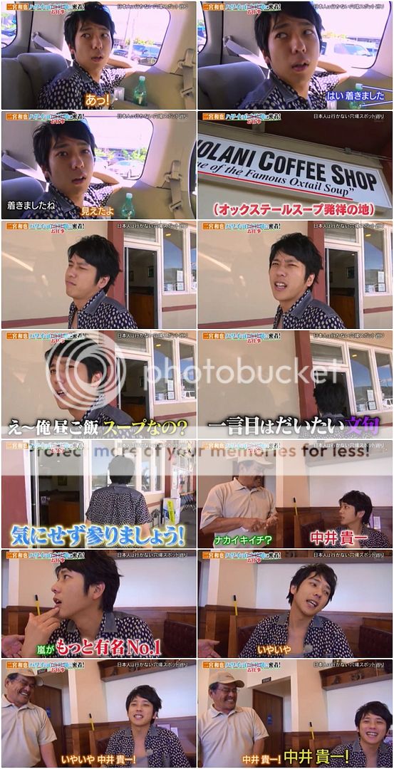 進去之後和店長好像很聊得來嘛,一直在聊某位藝人。最後那句話才是重點,嵐的人氣在夏威夷可是第一名!NINO『不不不,中井貴一才是。』