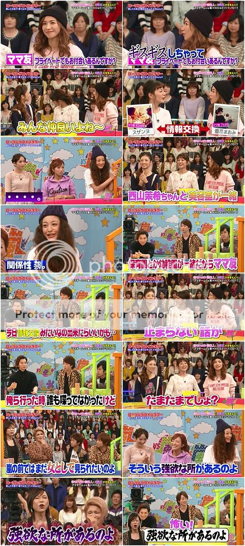 先是媽媽隊來先攻。這裡說到孩子會在家裡看番組,會依照小倉桑的染髮來辨識。但是媽媽啊,IKKO桑的頭髮也是有染色的喲。所以翔一直cue IKKO桑來假扮人家媽媽。真是的!