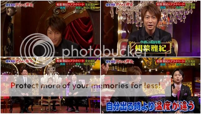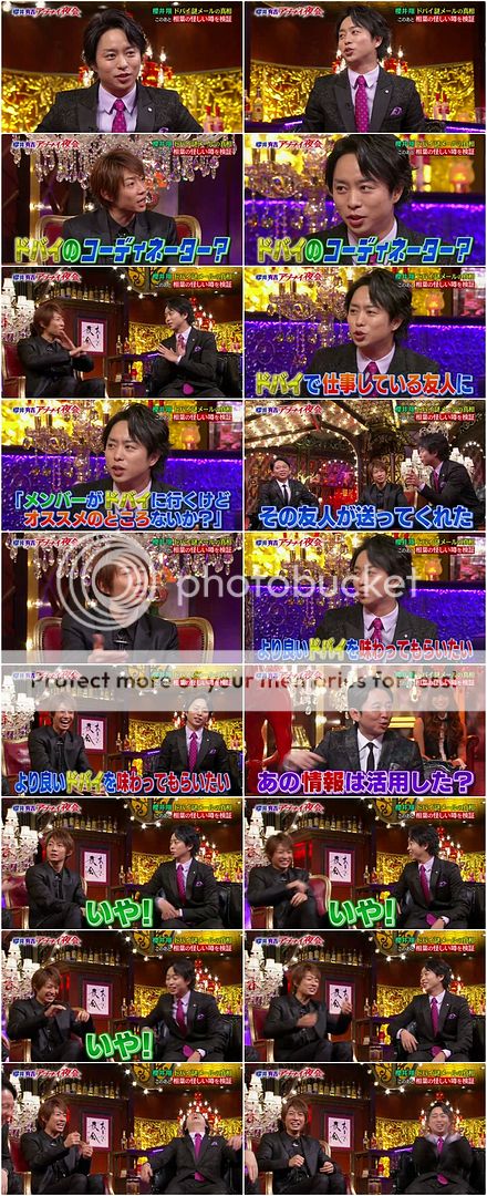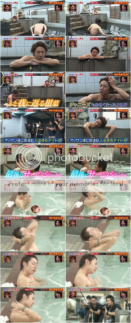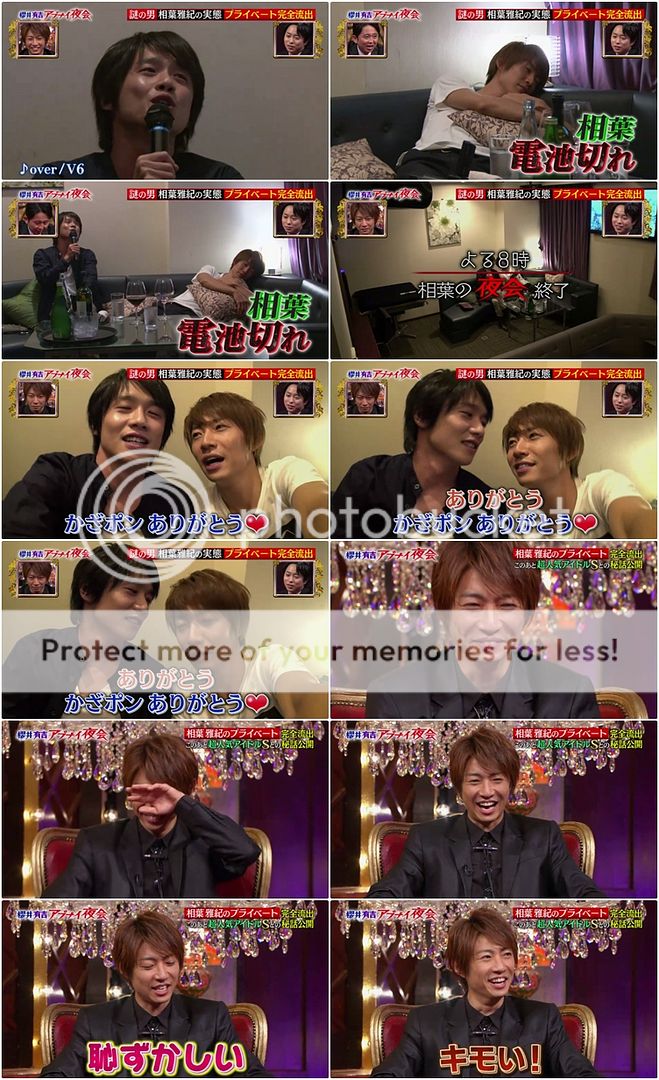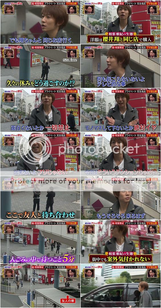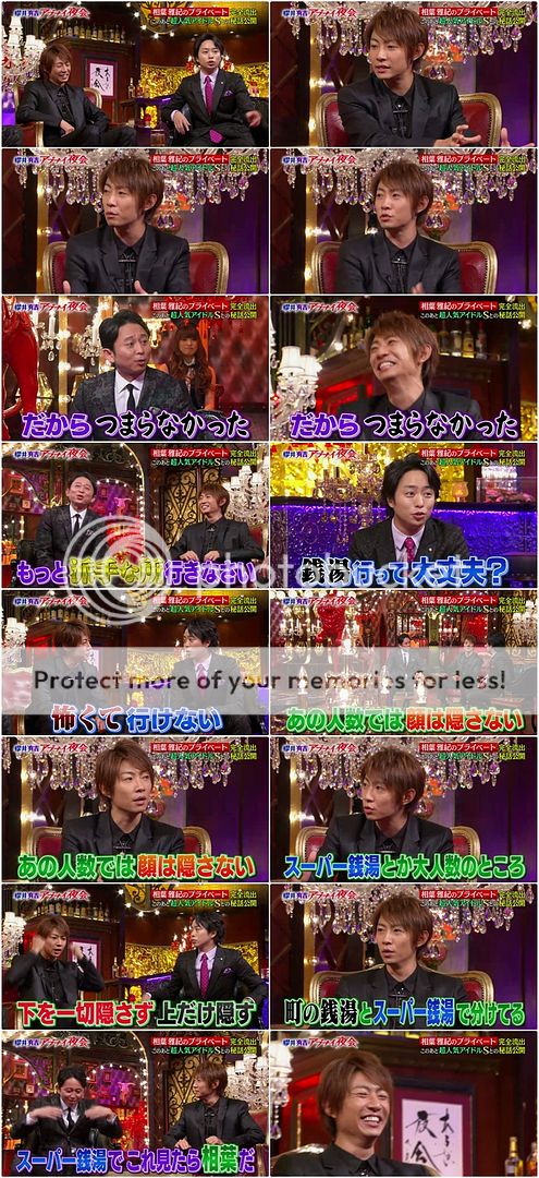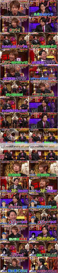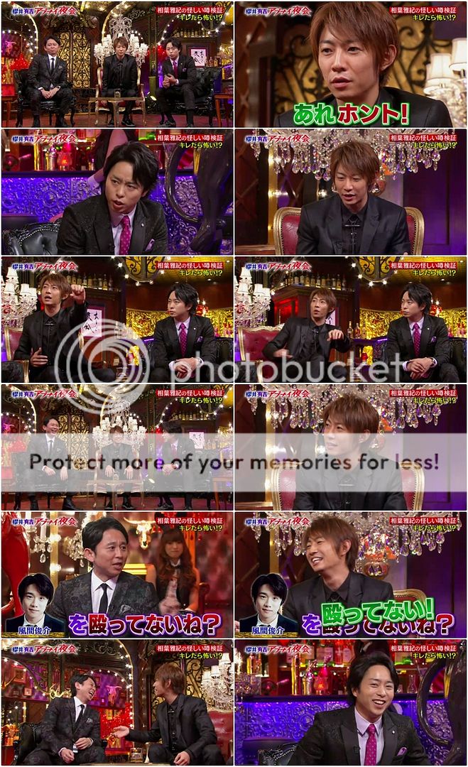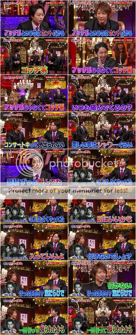 翔說這件事是真的。有吉桑問『指的是他喜歡男生的事?』(喂喂!!有吉桑不要這樣接話啦!)翔就替雅紀辯解關於洗澡喜歡來亂入的事。雅紀就是個純天然嘛。每次開演唱會都很興奮很開心,所以就很想把那份喜悅分享給門把。最初利達,NINO和他都無法接受會拒絕雅紀,但是後來都習慣了雅紀,每次雅紀來亂入,門把就欣然接受『進來吧。』哈哈哈哈!!!有吉桑問那潤呢?雅紀說沒有過,雖然有曾經想試試看。哈哈哈哈哈!!!千萬別啊!!不要拿性命開玩笑。噗!