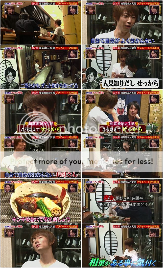 接下來雅紀問起了風PON的Jr到現在的失敗談。怎麼知道,問的人是你,但是沒在聽的也是你。風PON才剛開始說話,雅紀就喊了『すみません』請服務員拿啤酒來。哈哈哈!這時候小窗口的櫻井翔笑的好大聲。還真不是一般我們看到的相葉雅紀呢!原來那麼霸氣帥氣的!
