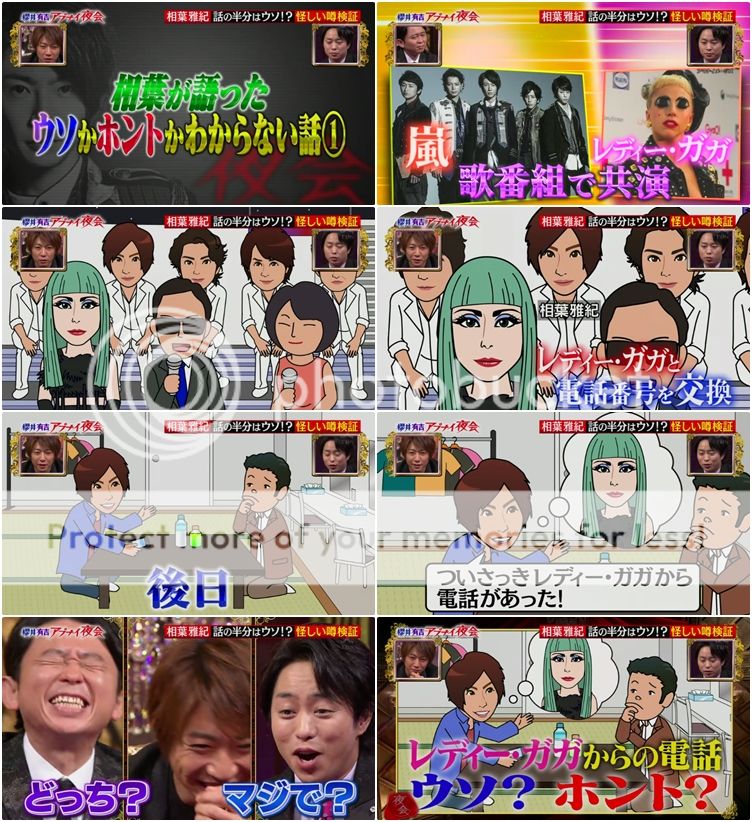 雅紀說孔雀是真的!有吉桑反而質問絕對是假的吧!至於LADY GAGA電話那件事,雅紀卻說自己完全不知情。根本自己沒說過這件事。