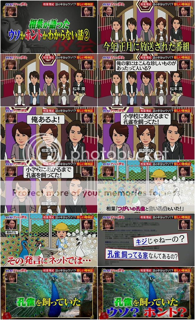 第二個語錄是今年正月的另個番組中,潤問門把自己家裡有令人很珍惜的東西嗎?雅紀當時回答自己有,是小學開始就飼養的孔雀。真的???