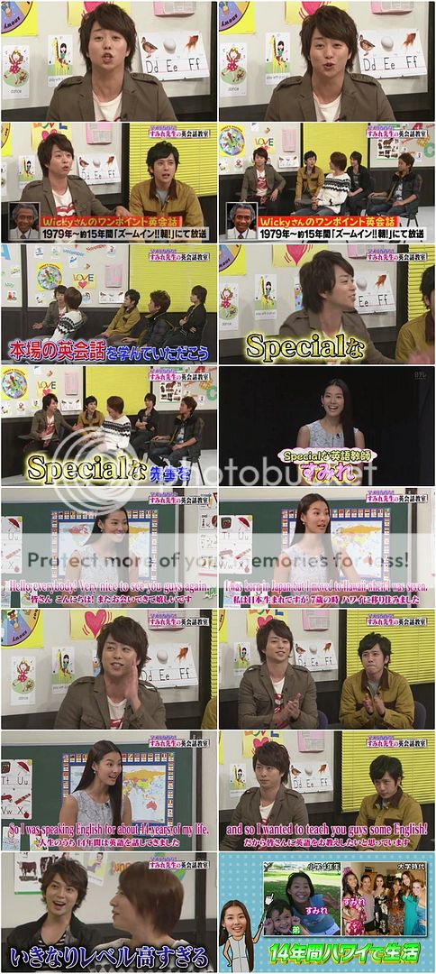 今天一整個牆壁都是英語單子和卡片,所以可想而知今天肯定和英語教學有關係。翔說今天於是要請來教導嵐的米娜學英語的スペシャル(日語說法的SPECIAL),啊不是SPECIAL老師~』主播饒英語了啊!真是驕傲啊!