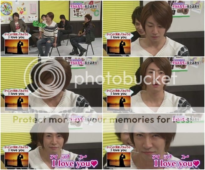 先生說翔和潤的發音都OK,不過大宮的發音聽起來像“我要揉你”(I RUB YOU)。噗!哈哈哈哈哈哈哈!!雅紀的更離譜竟然是我要包裹你(I WRAP YOU)。哈哈哈哈!!!話說雅紀啊,LOVE明明字裡又沒P,幹嘛P尾音啊!