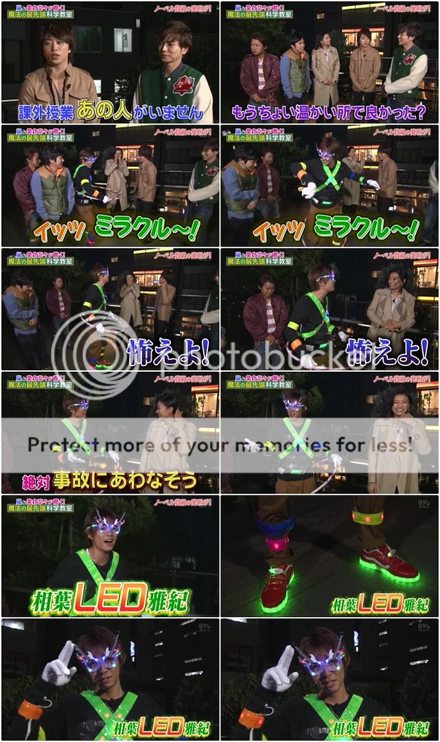 雅紀可愛出場了!!今天這是什麼裝扮啊!!!翔『好恐怖啊!』!!榮倉桑『今天是這個感覺?』今天課外授業是我們相葉LED雅紀擔當!還真是從頭到腳都是LED燈啊!!