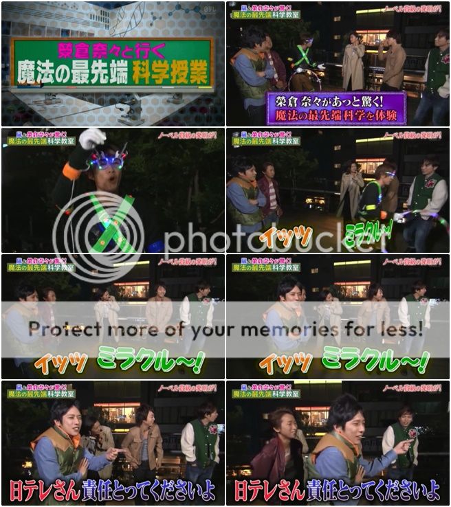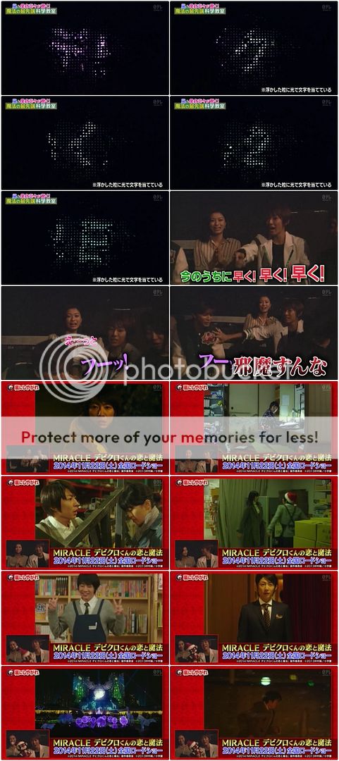 接下來就是運用LED燈來番宣咯!!是的,看到榮倉桑肯定就知道是要來番宣我們雅紀的首部主役映畫《MIRACLEデビクロくん恋の魔法》。但是門把就開始胡鬧的不讓雅紀番宣。哈哈哈哈!!潤第一個衝上前要關掉那個LED。哈哈哈!