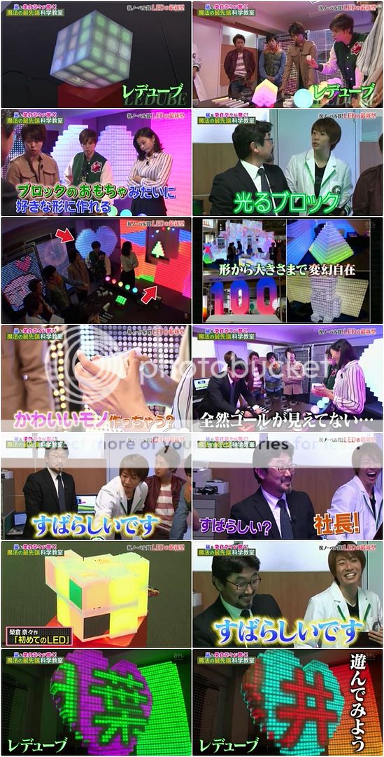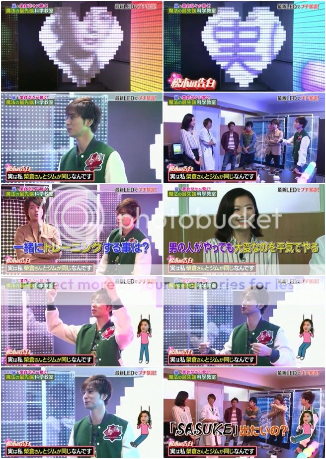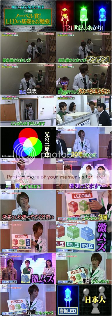 開始這裡的解說除了模特很好笑以外,其他細節我跳過。雅紀說大家知道為什麼藍色的LED燈是最後才被發明出來嗎?潤『這個我知道哦。』雅紀就有點慌張的說『那松本君請麻煩保持沉默。』可愛~不要拆雅紀的台嘛,偶爾給他帥一點啊。
