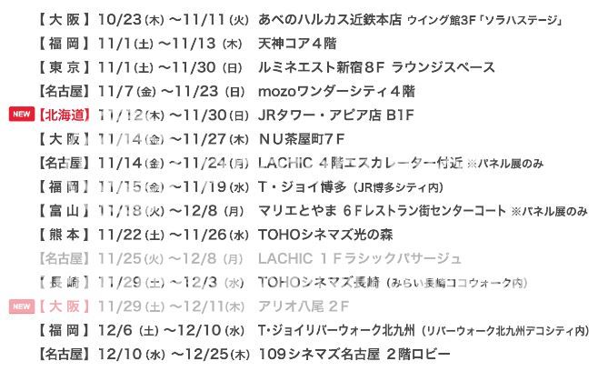 再來就是以下地點會展示映畫主要演員們在映畫裡穿的服裝。