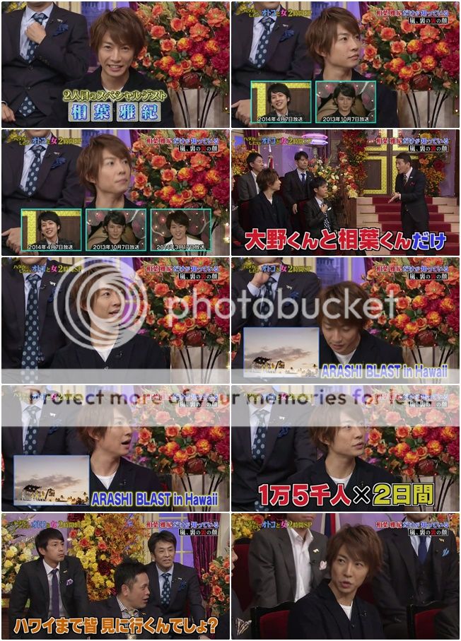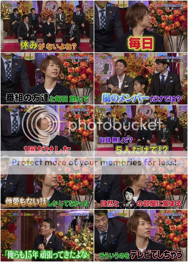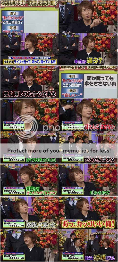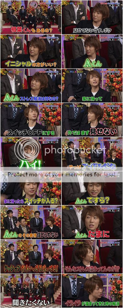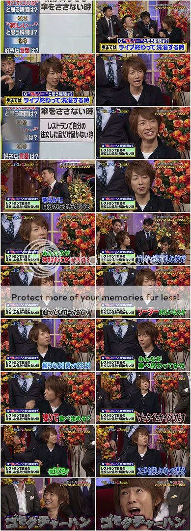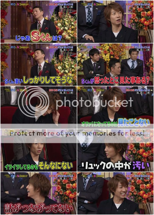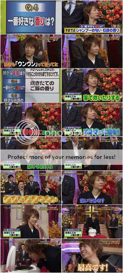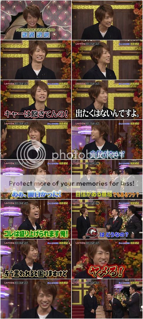 雅紀出場,氣氛就變得好不一樣了。真的感覺的出嵐和芸人關係都不錯,而且大家好愛說嵐之前的關係很好(確實很好!)。再來這期發現一點,我們雅紀是個亞撒西的孩子,因為有7位MC,所以輪流問話和他對談時,他會很禮貌的看著對方說話,這也代表雅紀得一直轉頭去看後面的MC。雅紀脖子沒事吧?辛苦了喲!