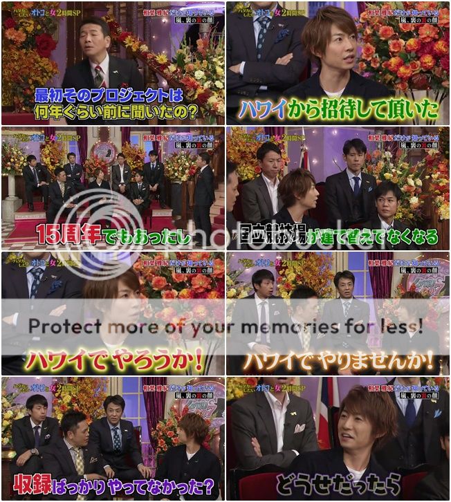 MC問夏威夷LIVE是什麼時候開始決定的?雅紀說是去年年底開始企劃。會選擇夏威夷當然除了因為是他們出道地,也是因為每年都會在9月於國立舉辦演唱會,但今年碰上了國立拆了重建所以大家討論出的結果就是『那就夏威夷吧!』