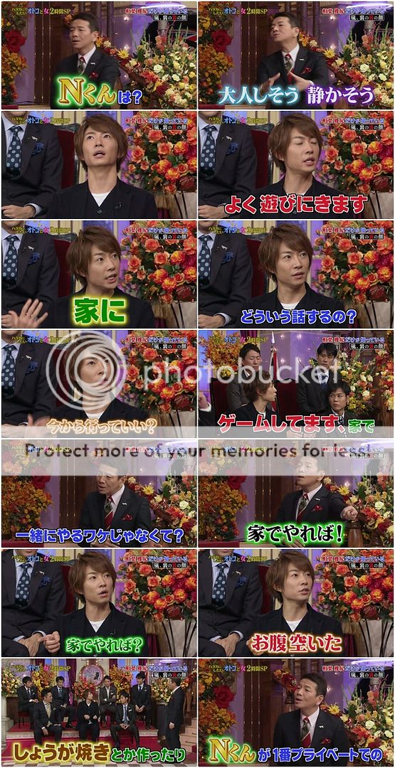 那私下應該是和N君最要好吧?雅紀說不過昨天和MJ去喝酒了(也就是說番組收錄是在11/4咯。誒?我也沒說我知道MJ是誰哦。哈哈哈!夠了不要再玩這個梗!)MC也忍不住問『為什麼要兩個都用暱稱啊!』