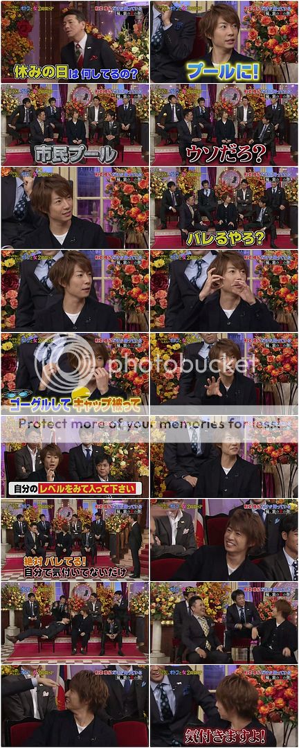 問雅紀休息日會做些什麼?雅紀說會去游泳,去泳池,公眾泳池。大家疑惑的說騙人的吧!!(最近還真是知道了好多雅紀私下的事,覺得這個男人還真是天然的可愛啊)。MC問為什麼他要選擇去公眾泳池啊。說真的不會被人尾行嗎?哈哈哈!!說真的在泳池看到雅紀,應該會無法反應吧。哈哈哈!