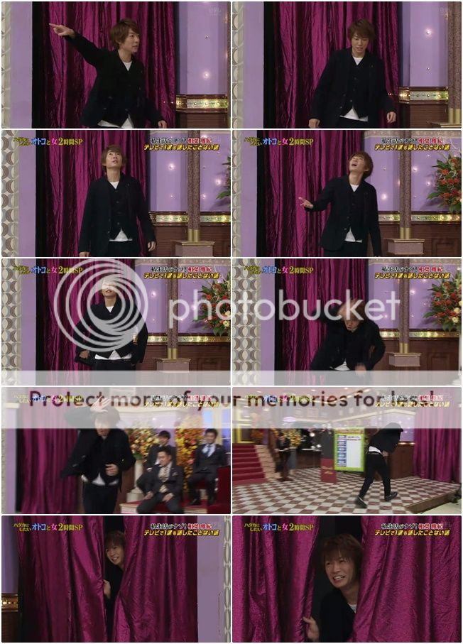 讓雅紀來示範帥氣雨中散步。最後卻因為下雨快速跑去遮雨根本和自己說慢慢走耍帥完全不一樣嘛。不過最後那樣躲在幕後面好可愛啊。應該是自己發現示範和答案的不一樣而害羞了吧。