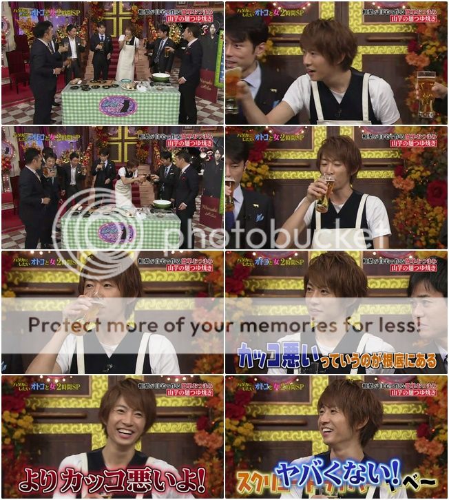 最後大家來乾杯。大家試吃雅紀做的山芋料理,全部大贊好吃!怎麼可以是IDOL連做菜也那麼上手啊!真是帥的沒道理了。哈哈哈!