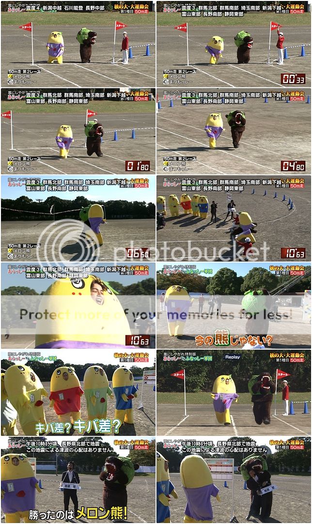 先從ふなっしょー開始!!對累MELON熊。嗚啊~~~~~~~我們ふなっしょー超級快的!!!!!贏了KING,現在又直接跑勝過MELON熊,我說我們ふなっしょー也是運動健將嘛。