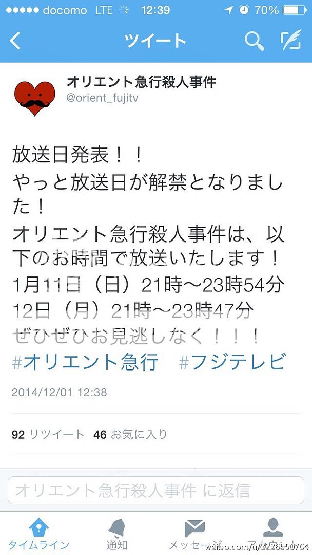 那就是NINO的賀年劇《東方快車》會在1月11日和12日,連續兩日放送。好期待我們的演技派秘書先生!