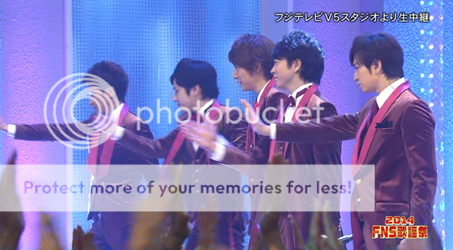 雅紀動作快了一拍哦。哈哈哈哈!!其實剛剛和前輩一起的舞蹈也快了人家KAT-TUN桑們一拍啊。看來最近忙著番宣的雅紀有累到了。好可憐的雅紀baby啊~
