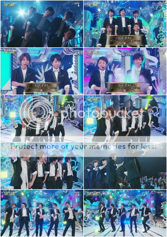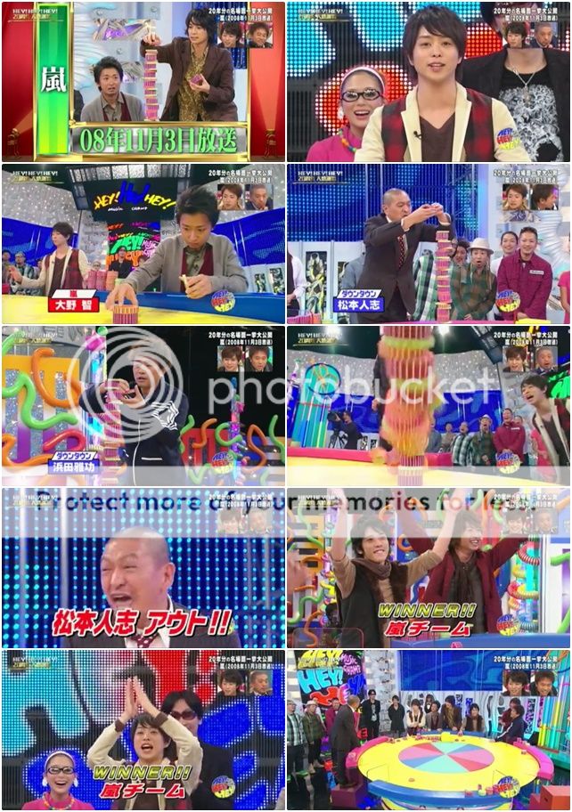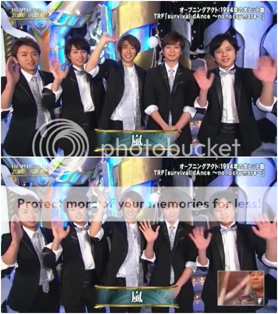 接下來是回顧20年來的經典畫面VTR,五人表情真是可愛啊!!不過看過去畫面,我真的快笑死了。但是看到那個SPEED桑們上番組然後松本桑(MC哦,不是我們潤)直接拍了SPEED的隊長的頭我都嚇到了。明明人家是女生啊!!幹嘛那麼大力啊,而且還把人家弄哭了!!不過這兩位大概就是這樣拍頭拍出人氣才可以一直持續番組20年吧。