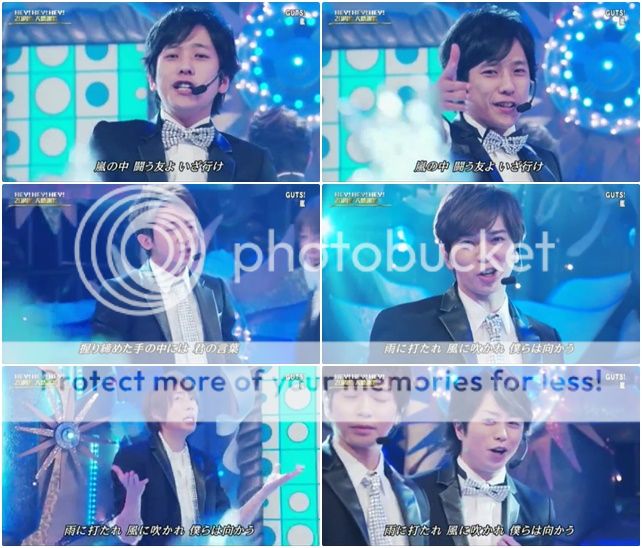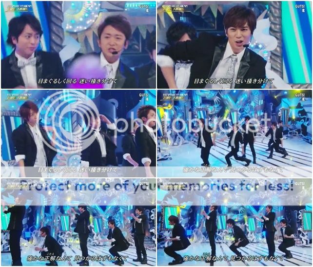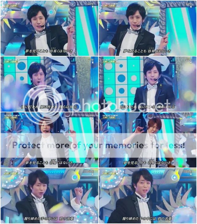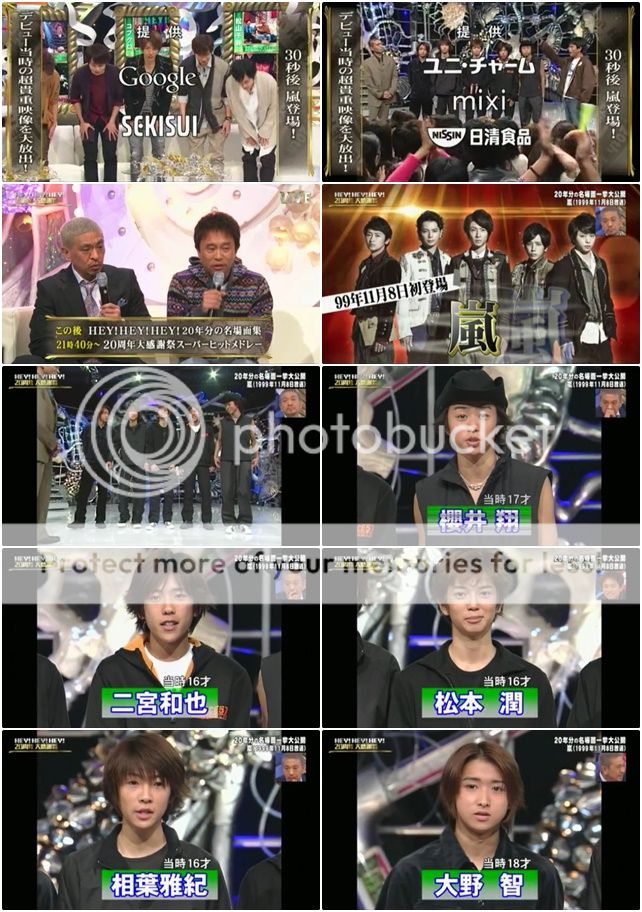 話說回顧畫面是在1999年之前的,都還沒有嵐這個團體,當時應該就還是Jr吧五人,或是根本還沒入社(比如末子和雅紀),就只有利達應該當時已經入社了。潤很自豪的表示自己有買那時候發售HEY3的CD。兩位MC還自己吐槽說當時存貨還有很多。哈哈哈哈!