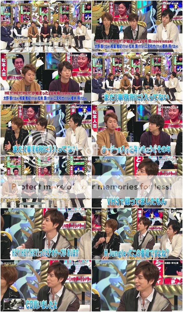先回顧了嵐第一次上HEY3的畫面!!天啊!!我們少年們怎麼那麼可愛啊!!而且大爆笑的是那時候門把各自介紹自己時,利達說完就被MC們吐槽說怎麼一點精神也沒有。哈哈哈!而且之後問到五人給前輩們跳舞時候的事,利達依舊是從以前就是那麼OFF的,所以很單純不假思索的回答了MC們沒有,被大力拍了頭。哈哈哈哈!!!利達那時候被拍後露出的表情實在是太可愛了!!