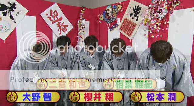 門把先給大家拜年,新年快樂!(我們團是有禮貌的孩子啊。噗)又是和服!太愛了有沒有!!一年就那麼幾次可以看到他們和服出場啊!接下來期待的是VS嵐新春SP的!