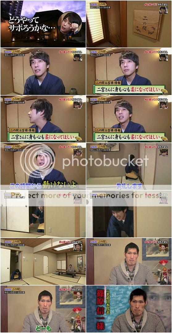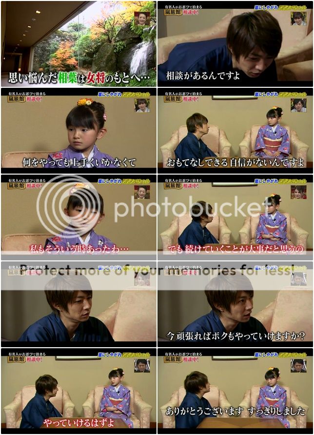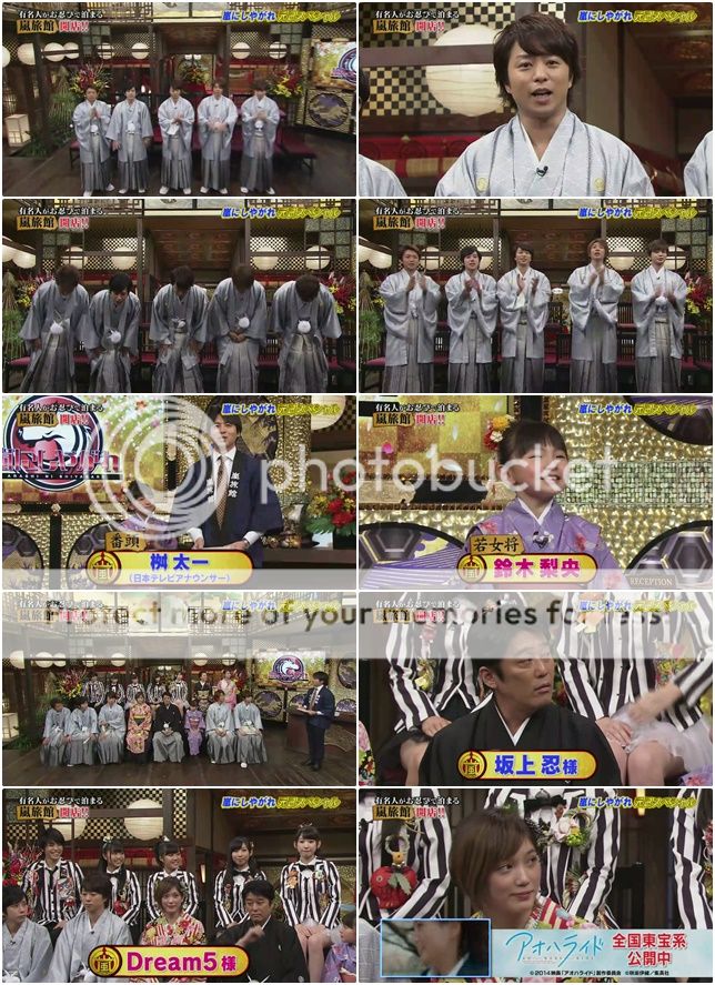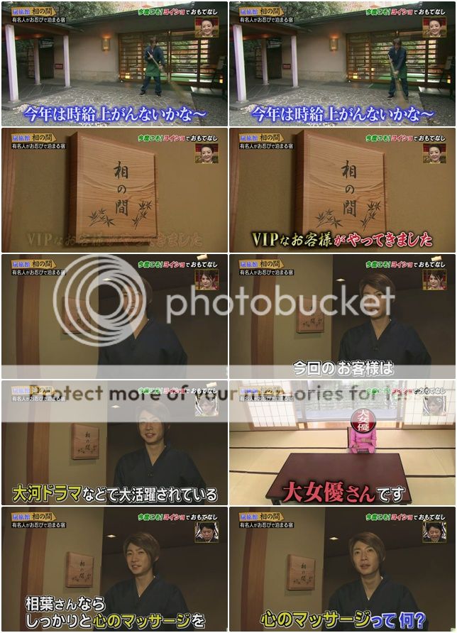 攝影棚內的助理MC是MASU桑,這次旅館的小當家是小小梨央醬,嘉賓有坂上桑(就是之前和嵐一起出外景喝酒那位)。