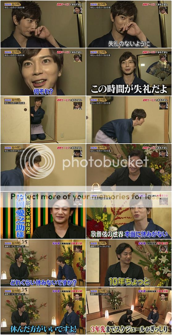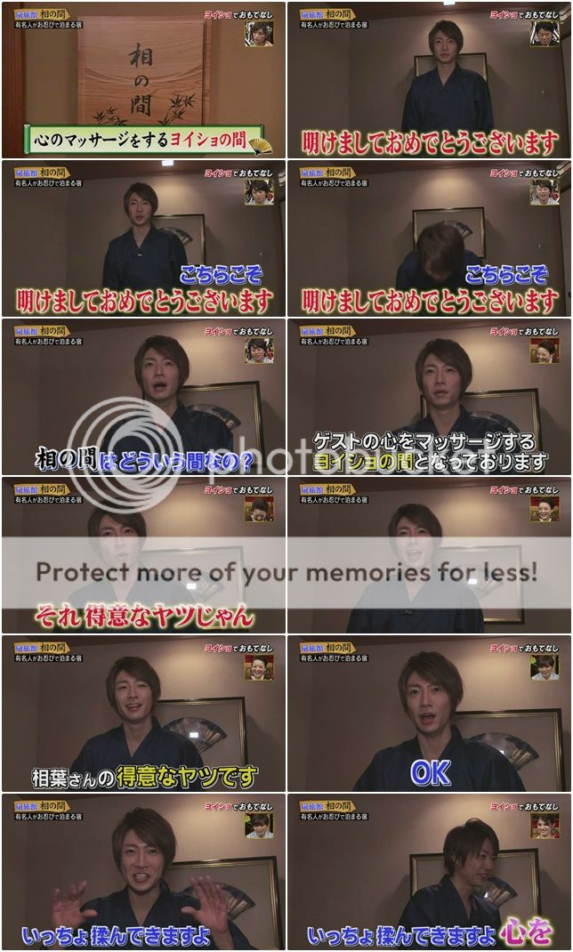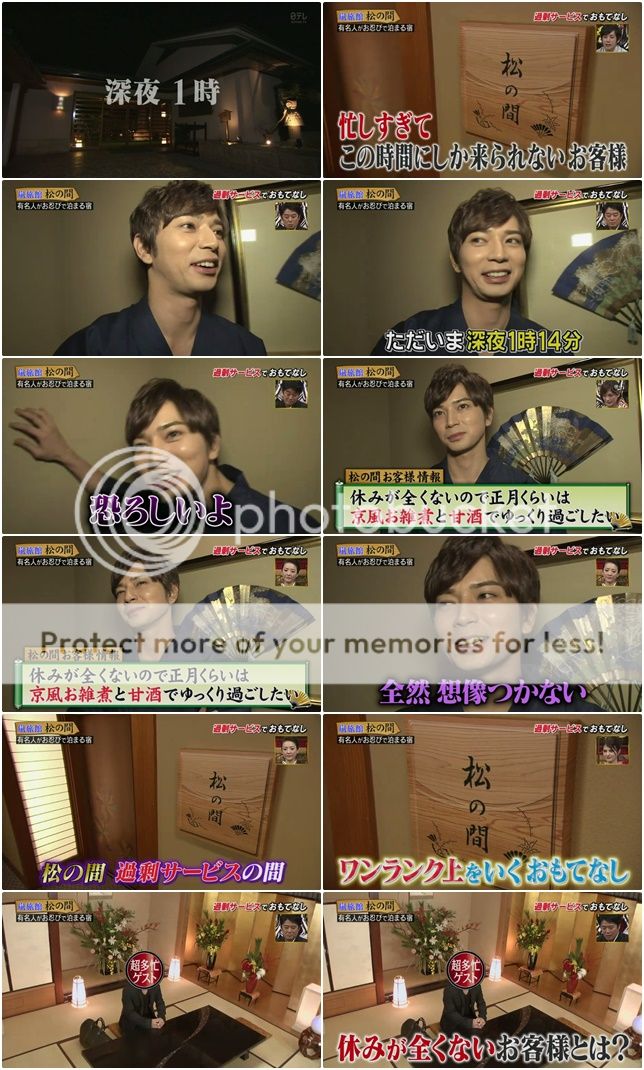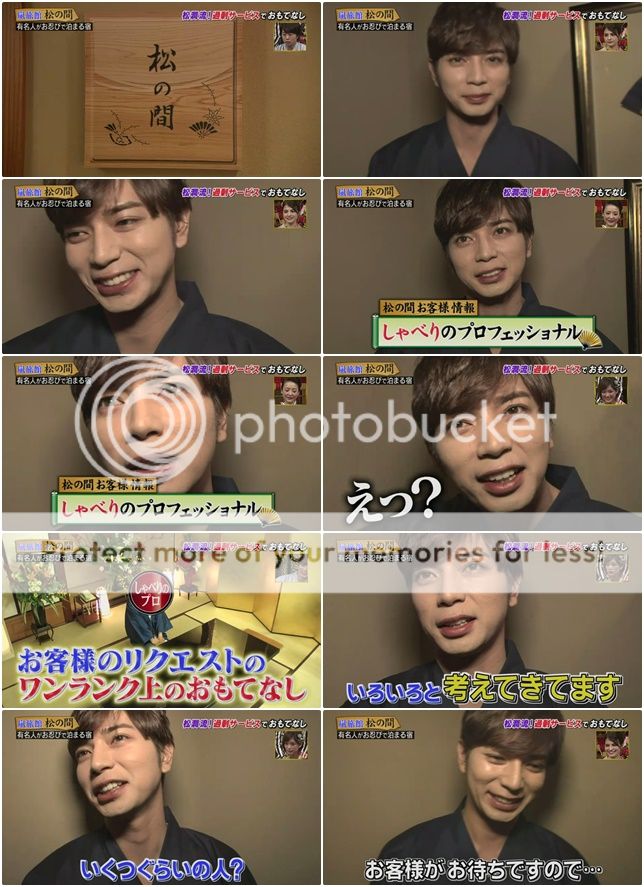 首先登場是我們松の間。這麼近拍潤會不會太牙白啊!這次來到潤招待的客房是位說話很專業的嘉賓,潤腦袋裡轉動出好多個可能性,但是staff桑不肯說,還被潤推了一下。潤弟弟不能耍賴喲。總之不要讓貴賓久等了,趕緊進去吧。