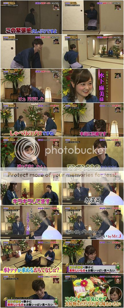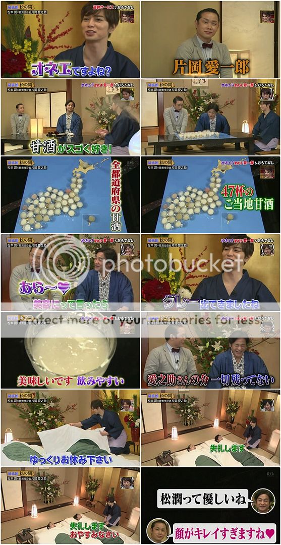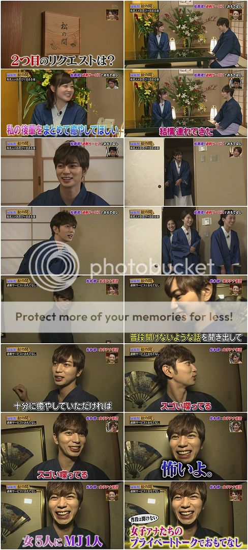 來到這個房間的嘉賓原來是NTV的主播麻美桑啊。當然說話絕對是她的專業。潤才進去房間她就緊張的不得了。話說我們松の間果斷就是非常氣派啊,而且還有潤每次都要用的加濕器!哈哈哈!!因為是我們MR J啊!(潤在攝影棚裡抗議說自己又沒有要求。噗!)