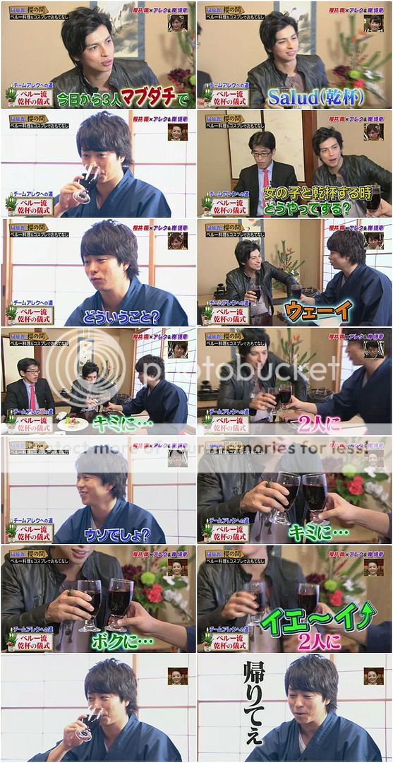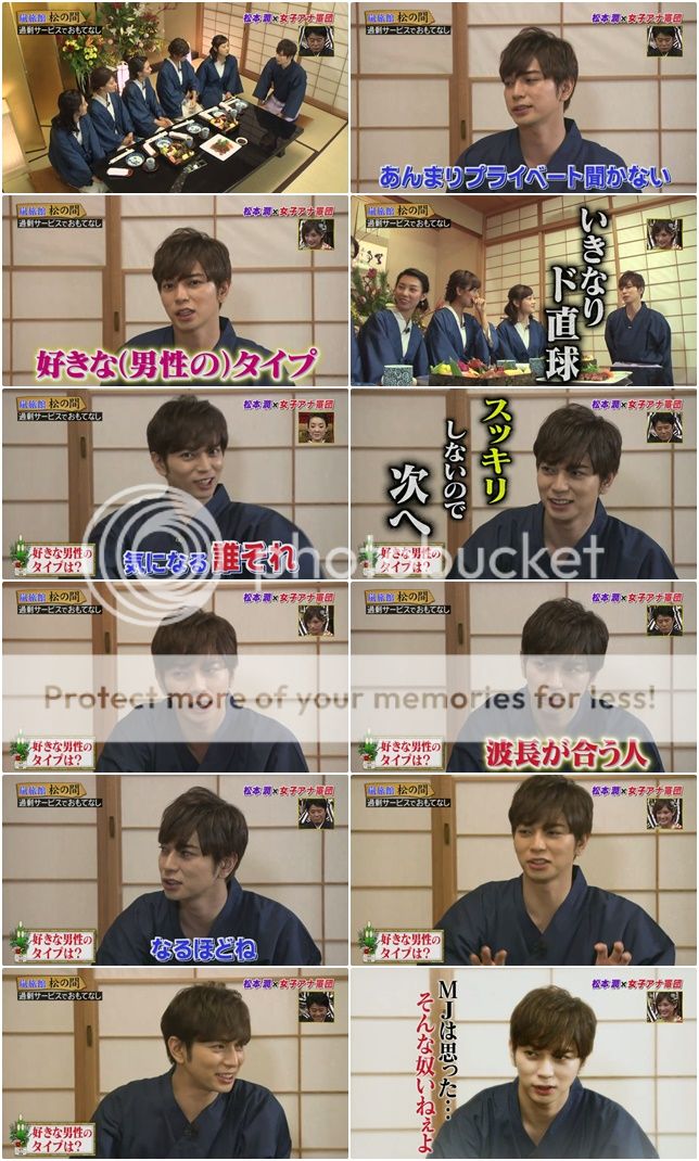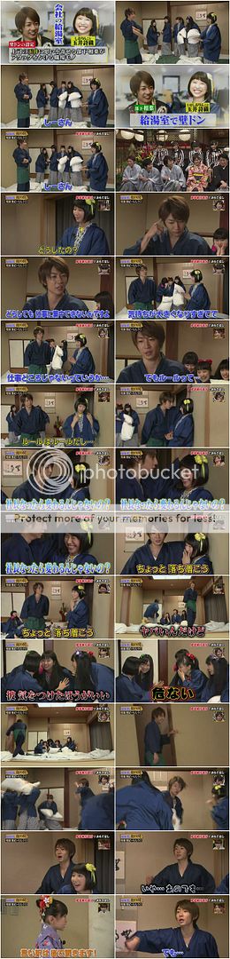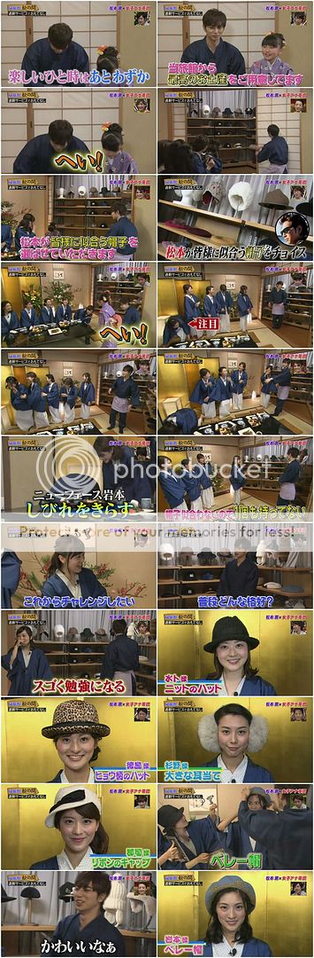 最後我們旅館的小管家進來了,說差不多時間了。潤整個很聽小管家的指令太好笑了!小管家說什麼他都只是“是”的回答。而最後,我們潤也為五位女嘉賓送上了手信,是潤親自挑選的帽子。有沒有這麼幸福啊!!!而且因為麻美桑很少買帽子對自己適合哪類型不是很清楚,於是潤就問了她大概平常的穿著打扮就為她配了一頂帽子。也太優しい了吧!!最後那個新面孔,潤為她挑選後還幫她戴上,接著還說人家可愛!哈哈哈!也蠻可愛啦。