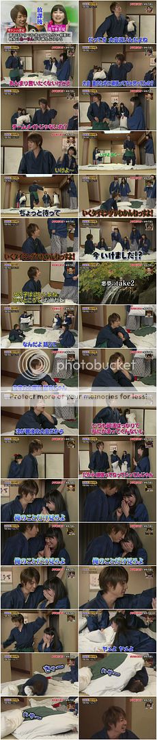 第一次雅紀還很尷尬,一直不知道他在對人家說什麼,開始慢慢接近時,因為其他四個女生在後頭一直說『快點啊,快點啊。』讓雅紀很慌張的轉頭讓他們等一下。要這麼快?這麼進攻?人家小女生就是愛這樣啊。於是惡魔的TAKE 2 action!(staff桑你們配字也太可惡)第二次說話雅紀就變得比較穩了,問人家星期六考試之後什麼的就跳過內容,重點是雅紀就這樣靠上去了!!!!被雅紀壁ドン的當下,粉色モモ都被嚇到了。哈哈哈!!應該是要很幸福吧!!一直捂著臉都不敢看雅紀,那幹嘛要求啊!雅紀看人家害羞,他自己更害羞,於是跑到被單裡躲起來!!!太可愛了啊這個舉動!!!!