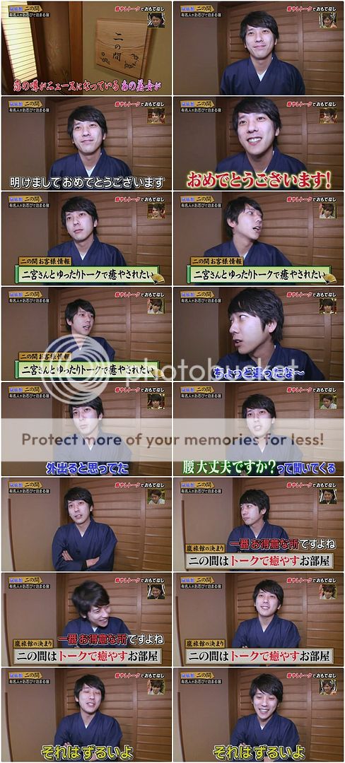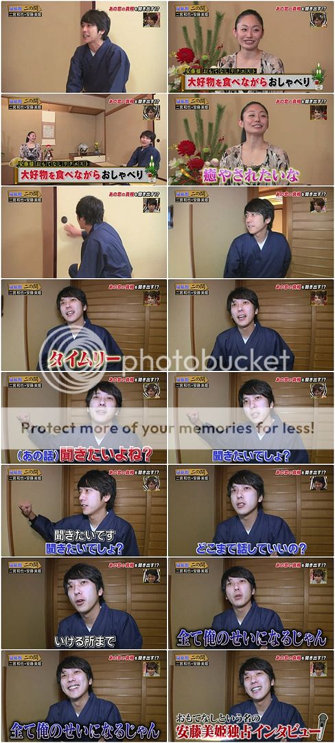 一刻都不能歇,我們NINO要進攻了!!問了安藤桑正月會做什麼(這個只是暖場)。安藤桑應該是要準備回歸了吧?不過我說NINO先生,你不是旅館的服務員們,怎麼坐的比嘉賓還悠閒啊。哈哈哈!給安藤桑製造了非常relax的氣氛後我們NINO豹準備進攻。