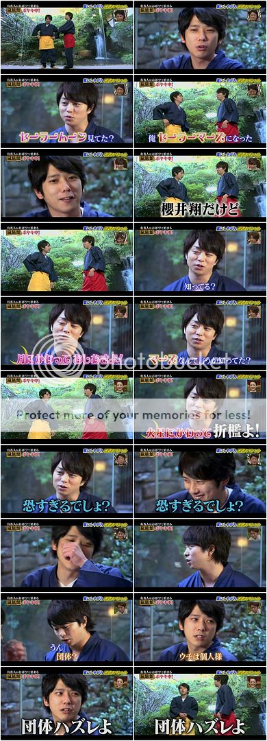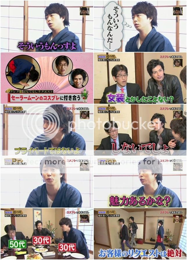 NINO和翔在走道上碰面。翔還洋洋得意的說他是美少女戰士哦。NINO『不,你是櫻井桑啊。』不是哦,他可是cosplay了美少女戰士哦。嚇到NINO不知道該如何反應。這段太爆笑了!!!