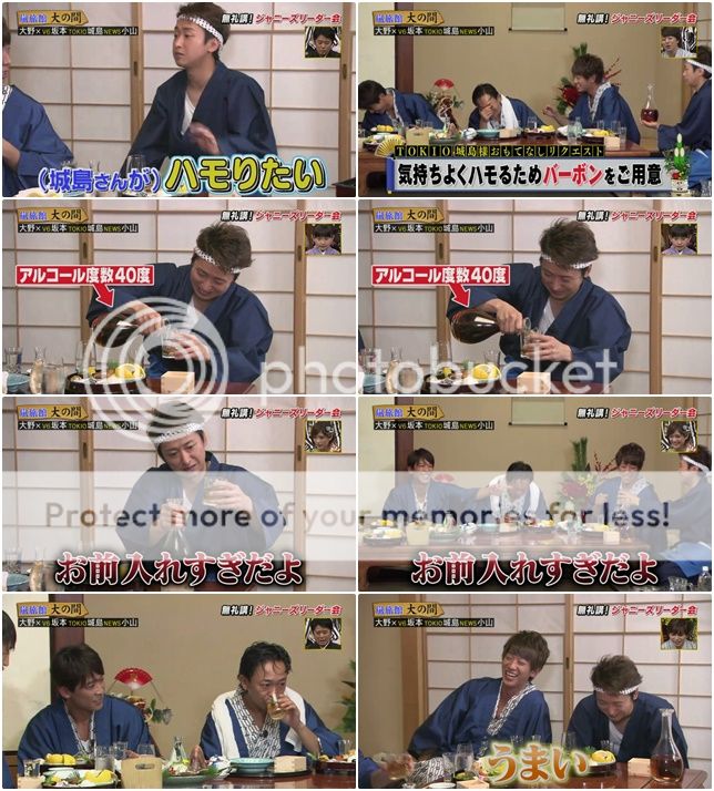是說既然城島君都沒提出任何要求,那利達就主動送上他喜歡的ハモリ酒,但是這個酒不一般啊!!!40%的酒精濃度啊!!!城島君還故意逞強的喝了一口說好喝。大家都笑成一團了。