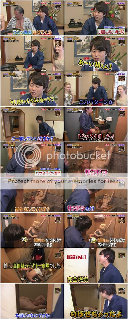 後來高田桑說要去洗澡,忽然洗著就叫了翔進去。前輩!!!你跟個假裸女在裡頭幹嘛啊!!嚇到我們家翔了啦!!!還要求翔幫他的SANDARA搓背是怎樣啦!!!哈哈哈哈!!這裡簡直是兒童不宜啊。直接給我跳過。