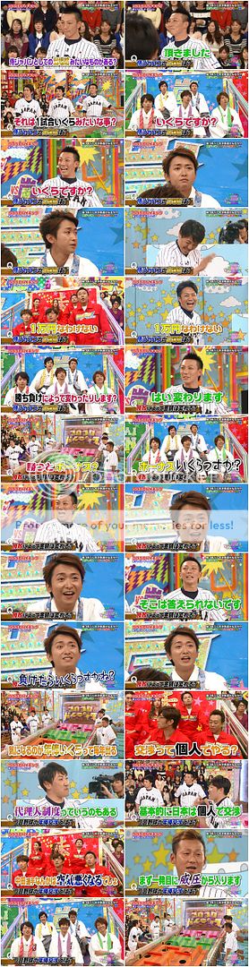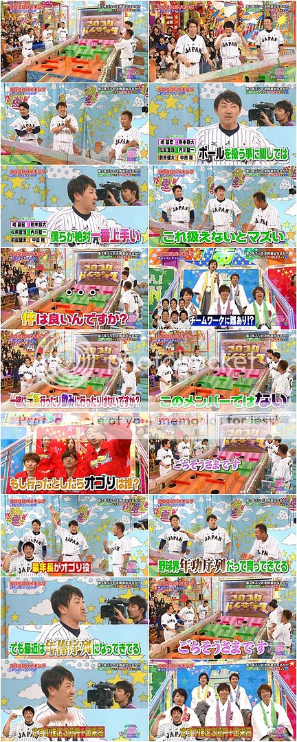 接下來是日本隊。隊長內川桑說只要對於球類的都很上手。門把問了日本隊大家感情好嗎?6人竟然一片沉默……哈哈哈!!誒?難道感情不好??就連NINO都激動站起身。難道連一起去喝酒都沒有嗎?內川桑說如果是這裡的六個人就沒有。那誰資歷最高呢?大家指過去,果然還是內川桑。內川桑卻說其實在棒球界沒有算資歷的,只有算年功順序(就是出賽最多,價格最高)。而出賽最多的指了那個人也還是內川桑啊。果然是價格最高者啊!!