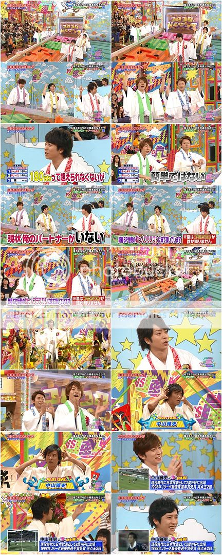 輪到嵐隊上場!粉色區是長末、綠色是竹馬而橘色區是翔。想超越180分其實還是有難度的(櫻葉一唱一搭很合拍),而且翔說到一個重點了,橘色區他一個人呢。是的,今年新春SP的PLUS ONE還沒請出來呢!於是伊藤桑請出了今日的PLUS ONE。一出場,門把都驚訝了。是中山雅史桑,現役的日本足球代表!