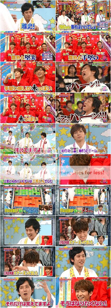 伊藤桑先來總結一下剛剛的成績,大宮一次好配合,NINO一次PERFECT,雅紀一次PERFECT,潤有取得分數。但是翔呢……翔『什麼都沒……』哈哈哈哈!!!別這樣,主播我期待你新一年正規番組的表現。頂多也是今年MMDA而已啊。哈哈哈哈!