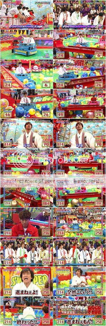 FORMATION LAP結束後就一直看到潤爺好進攻了!潤爺送了一顆金色球進分,但是在低檔未年隊時,怎麼中山桑也來湊熱鬧啊,直接給健君好多機會連續進了兩顆金色球。結束時,是未年隊258,嵐隊214。還是落後了。
