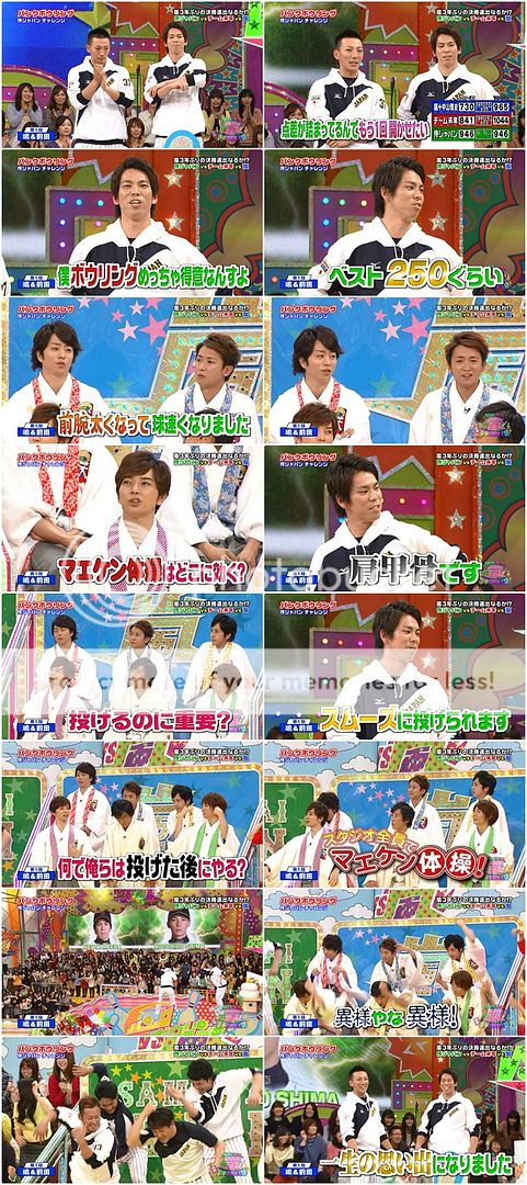 接下來是未年隊。三村桑說那如果strike了呢?翔竟然在台下說『變成公共假日,公共假日。』哈哈哈哈哈!!!!以為沒人聽到啊!!!NINO就先噴笑了,然後三村桑也聽到了說是誰在說變成公共假日啊。不過第一投就紅色瓶子倒下很厲害哦。而且還是板野桑擊倒的。第二投也還是不錯,至少也弄倒了三個瓶子。