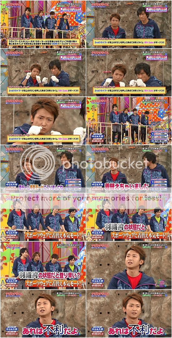嵐隊怎麼都換衣服了呢?翔就先說果然穿著羽絨和服對我們的狀態來說攀岩太辛苦了。利達就附和的說『那個對我們太不利了。』真的很怕輸啊我們利達所以一定要換衣服啊!