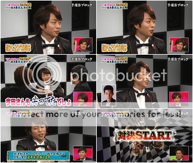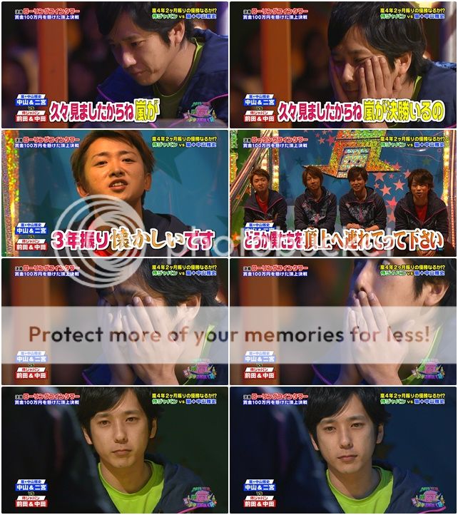 伊藤桑解說如果嵐隊拿下460分以上就是他們進入總決賽,如果低於就是未年隊進入。NINO就說絕對就是現在了!!總不能常規的他們連續輸三年吧,他自己可是絕對不想看到這樣的結果。翔於是說那就把期望都寄託到了最後一棒了。今天第一棒是末子,第二棒是利達+櫻+葉,而三棒就是中山桑。中山桑被寄託希望說大家不能剩下瓶子給我哦。門把『但是這不是你本職嗎?』(再次提醒中山桑是足球員)。但是就連之前足球員來也是完全不行啊,這可是VS嵐,你們嵐啊,不是雅史啊。翔就說如果是到這個場合,我們是可以全部變成雅史啦。哈哈哈哈!!!大家給我打氣精神來!!好好的上吧!!
