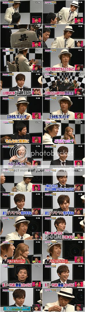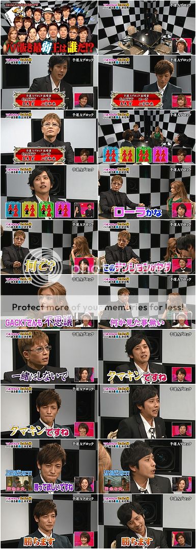 開始進入抽鬼牌,由NINO來發牌。抽著抽著,鬼牌跑到了GACKT桑那裡,原本一直面無表情的,但是當NINO手中的牌只剩下兩枚後,GACKT桑開始慌張了,於是問『如果最後輸了怎麼辦?』於是NINO就開始給GACKT桑進行解說規則,說最後就是到最弱總決賽和雅紀拼最弱王,輸了就要穿那個白色西裝和拿那個搶出場。GACKT桑『搶?』隊!就是雅紀現在小窗口內拿的那把。GACT桑『那我可不能輸。』完全陷入慌張啊GACKT桑,好不平常啊。後來鬼牌被ROLA抽掉了,GACKT桑竟然也露出放心的表情。明明大家平時面無表情的,但是到這個遊戲真的會慌張哦。