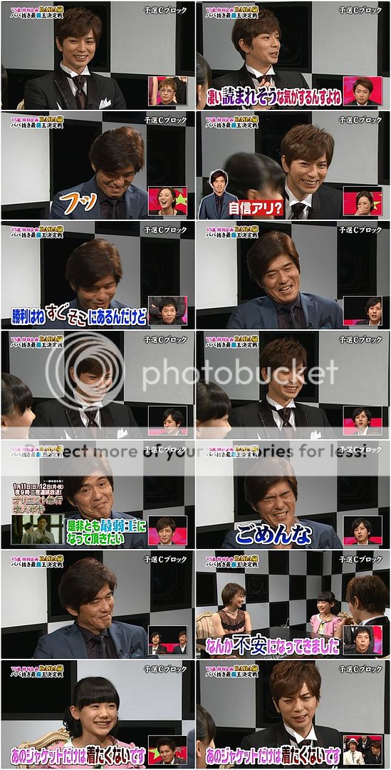 NINO就說但是基本上你們那區已經是決賽區了喲。哈哈哈!就請之前有進入決賽的舉手!果然三位男人舉手,我們初回最弱王、作弊王(森山桑)還有狩野桑啊(唯一可以和雅紀拼的)。