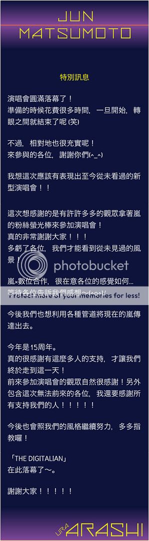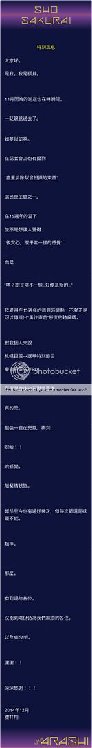 這次還有請FC的各位給他們提供參與演唱會的感觸所以還沒投稿的還不遲哦。2014年太過完美,2015年期待總監大人的努力!