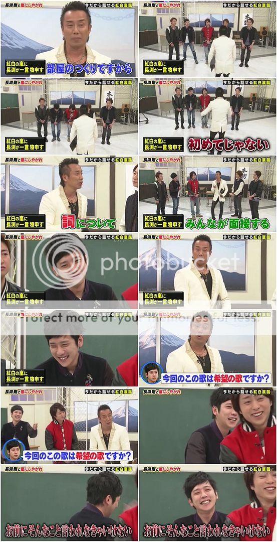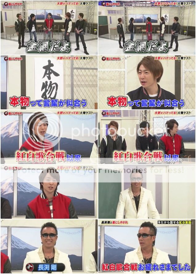 不過呢……長渕桑有點小抱怨想說『之前在這裡不是和各位一起進行鍛煉(就是2012年某期番組的內容),還以為經歷那次鍛煉後應該和各位已經成為好夥伴了,結果在紅白開始前怎樣,嵐竟然坐在了比我還高一階的地方(翔:挨拶時?)在這裡培養的感情呢?而且二宮桑還對我露出很冷漠疏遠的表情。(NINO大抗議『才沒有!沒有沒有!』)之後就是攻擊了潤也對他超級冷漠的。哇哈哈哈!!今天末子被攻擊了。