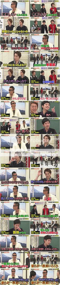 雅紀『才不是那樣!那就走吧!』哈????雅紀你到底在回應什麼啊?先生也不解了。不過bambi雅紀太吸引長渕桑了所以兩人就用那句『就是那樣、就是那樣』然後有是勾肩搭背的唱『無論什麼時候都能做,就是那樣!』到底這些歌詞是什麼意境啊!!完全不解啦!!真是的!!長渕桑太喜歡雅紀了啦,翔你可要小心哦。哈哈哈!磁石整個在旁邊已經快笑翻了。